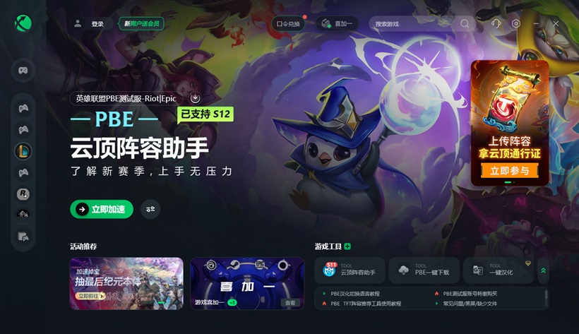 PBE的服务器没有在国内,在国内直接进入的话,很容易出现登录界面黑屏、打开一片黑等问题。使用网络优化工具迅游加速器,对PBE进行加速,加速完成后可以有效优化网络环境,避免游戏出现黑屏崩溃等问题。迅游加速器点击口令兑换,输入“迅游好用”领取5天免费加速时长。