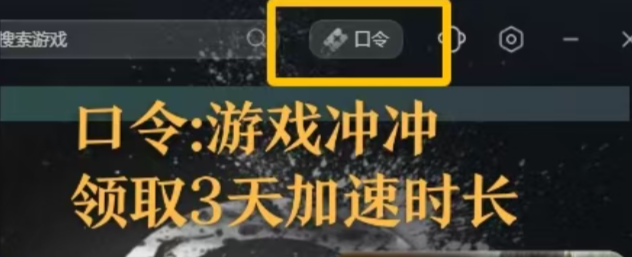 客户端右上方【口令】,输入【游戏冲冲】免费领取3天加速时长