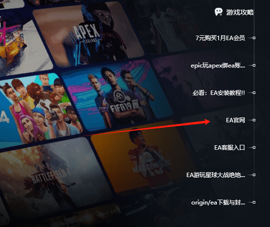网络优化后我们点击右方游戏攻略内的EA官网