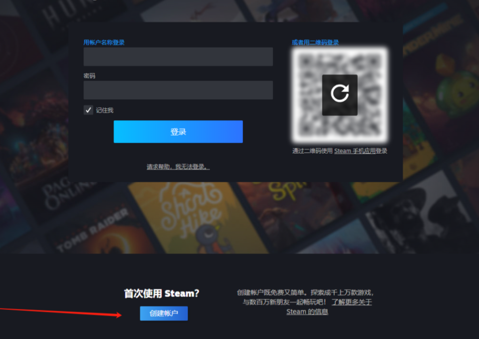 登录steam账号,没有账号的玩家,点击下方创建账户