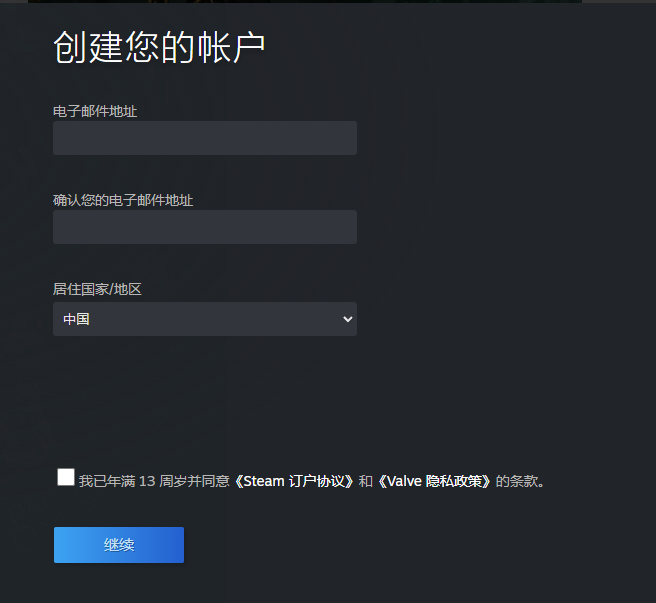 输入电子邮件地址后根据提示玩家账号创建即可