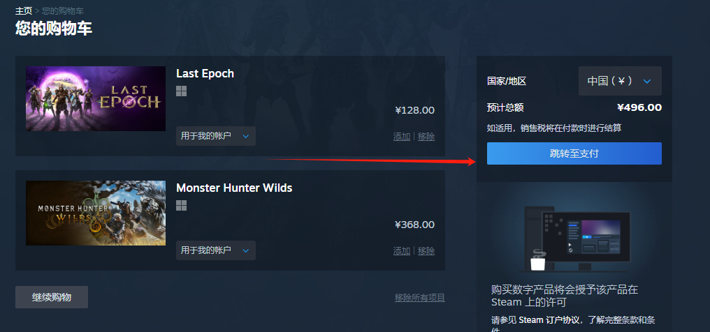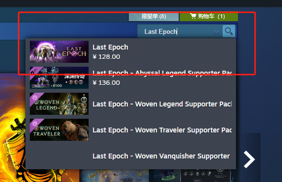 创建完成后,登录steam,搜索游戏英文名称:Last Epoch