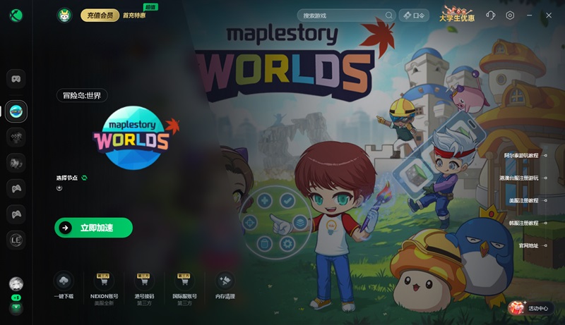 为了能够流畅注册冒险岛世界港澳台服账号,建议使用迅游加速器来优化网络。打开迅游加速器客户端,搜索并加速“冒险岛世界”,加速完成后再进行账号注册。迅游加速器不仅提供在“口令”输入“迅游好用”来领取免费加速时长的服务,还为大学生准备了特别优惠。