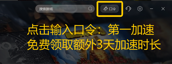点击右上角【口令兑换】输入口令【第一加速】免费领取3天加速时长