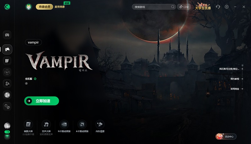 优质网络是顺利下载游戏的保障,这里推荐迅游加速器。启动迅游加速器客户端,搜索“吸血鬼”,点击 “一键加速”。迅游加速器凭借先进智能算法,能从众多线路中筛选出最适配的网络路径,有效减少网络延迟、卡顿与丢包现象,为游戏下载筑牢网络根基。在迅游客户端右上角口令兑换处输入【迅游好用】,可以领取免费加速时长。