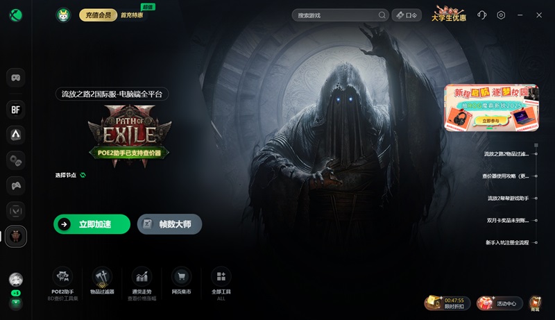 迅游加速器是一款专业的游戏加速器,支持《流放之路2》全区服加速,加速稳定又流畅,一键解决网游下载慢、延迟过高、游戏卡顿、容易掉线、联机困难等问题,助力流畅联机。