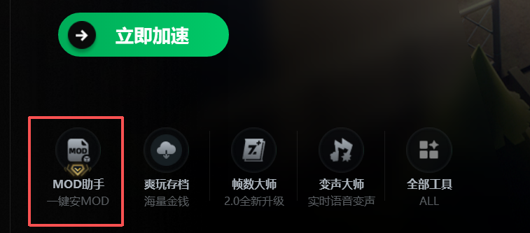 加速后点击【MOD助手】即可,此功能可以帮助大家一键安装MOD。