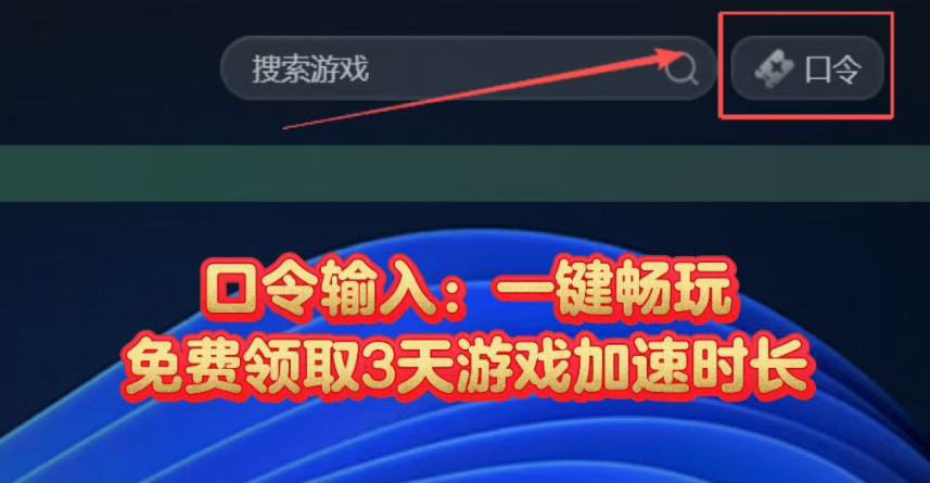 点击客户端右上方【口令】,输入【一键畅玩】获取额外时长