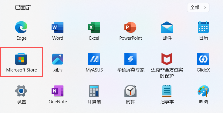 下载完成后,点击我们电脑开始菜单,点击【微软商店】