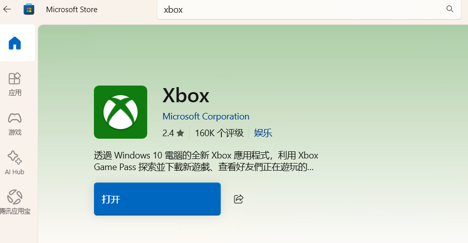 点击搜索框搜索并获取【Xbox】即可下载成功