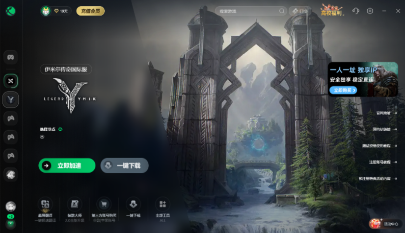 由于伊米尔传奇是海外游戏,因此我们需要借助加速器的帮助才能够流畅游玩。我们打开迅游加速器,搜索【伊米尔传奇】加速即可优化网络,然后再进行下载相关操作,即可有效解决ERROR报错下载失败、下载失败的问题 出现。