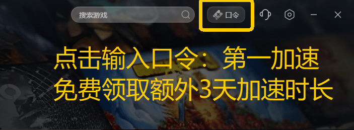 点击右上角【口令兑换】输入口令【第一加速】免费领取3天加速时长