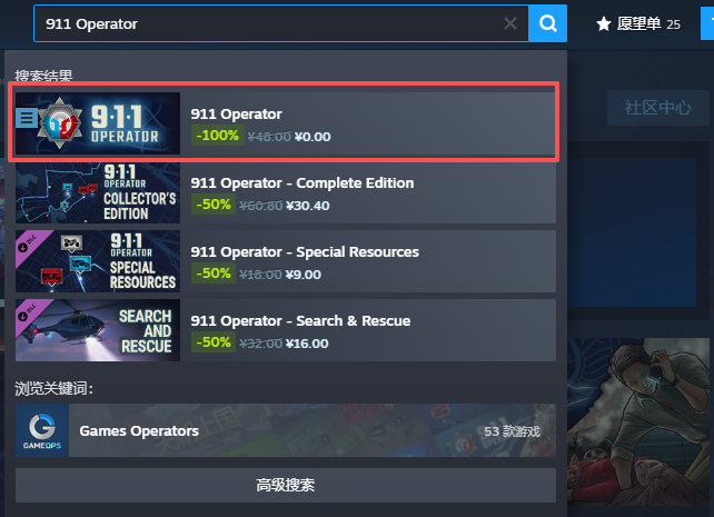 我们打开steam商店,搜索【911 Operator】找到911接线员游戏