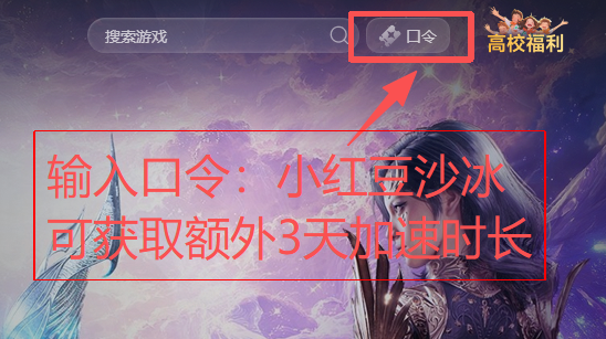 点击右上角【口令兑换】输入口令【小红豆沙冰】免费领取3天加速时长