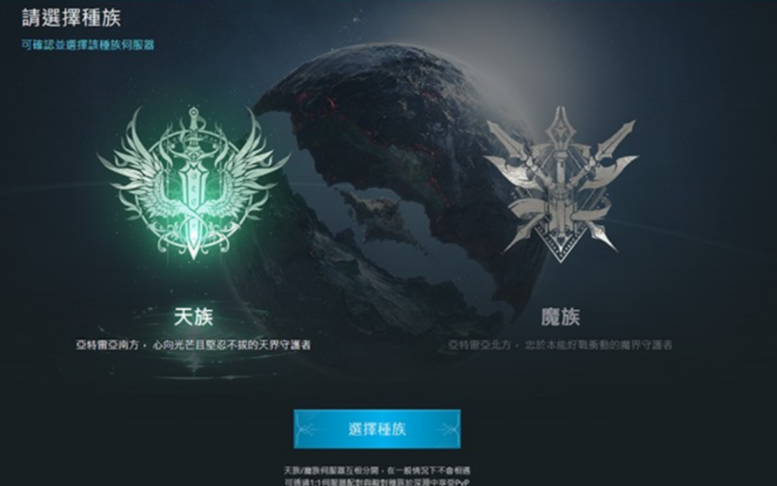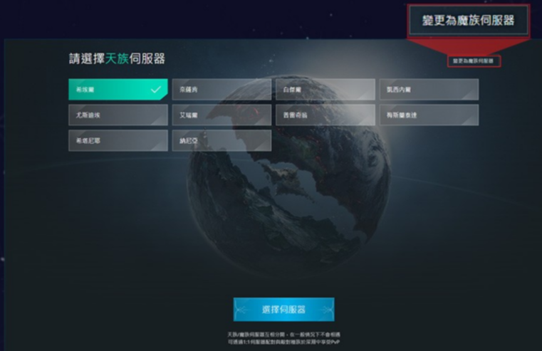 步骤四:选择对应种族的伺服器