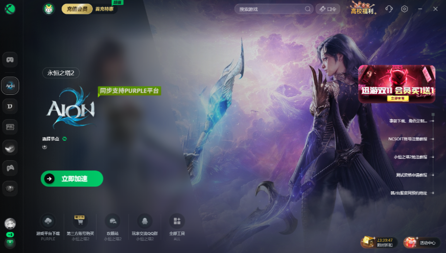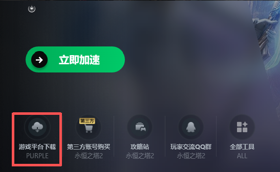 迅游加速页面左下方工具栏使用【游戏平台下载】工具,即可一键安装PURPLE游戏平台。避免手动寻找官网以及安装失败的情况。