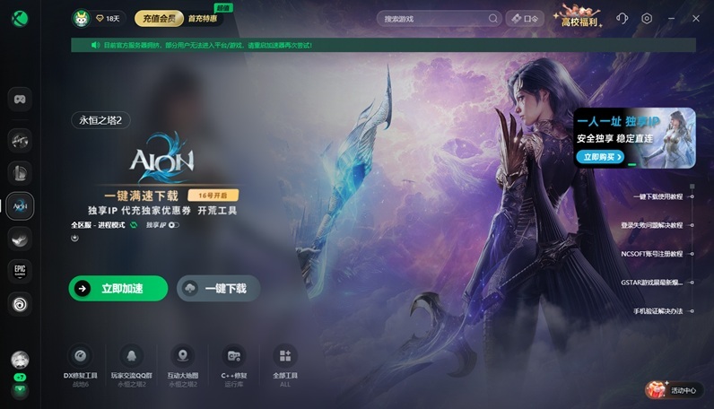 迅游加速器还为玩家提供了一键慢速下载、独享IP、互动大地图、NCSOFT账号注册等工具和教程,帮助大家更好游玩《永恒之塔2》。