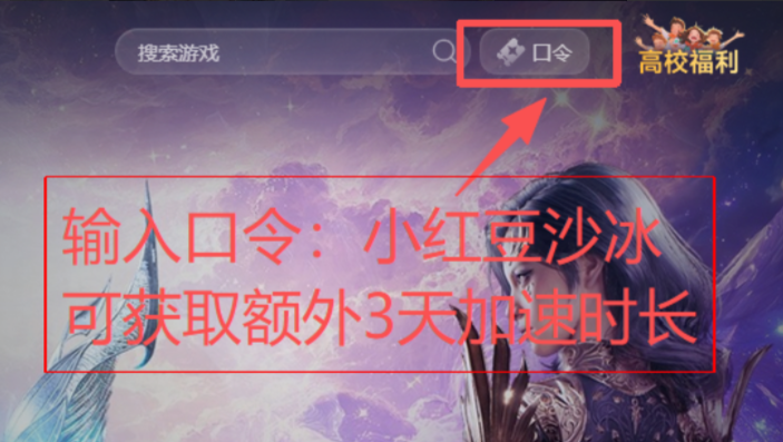 点击右上角【口令兑换】输入口令【小红豆沙冰】免费领取3天加速时长