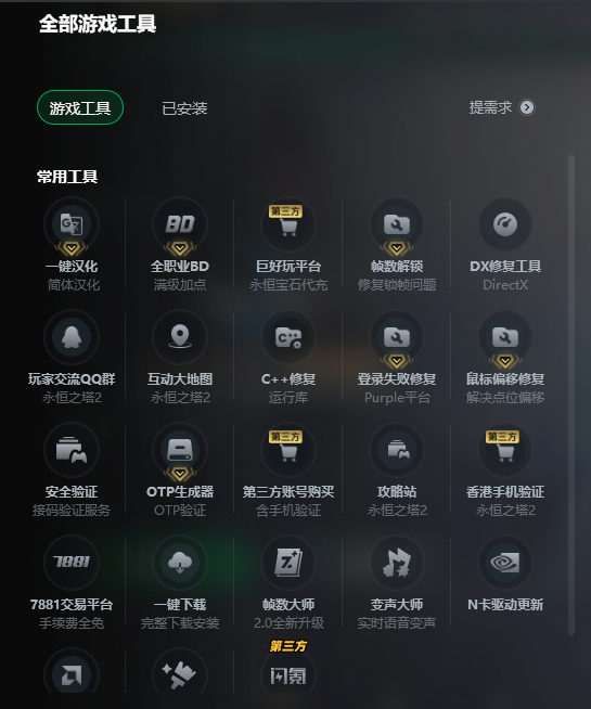 还有各类游戏工具,可以帮助有效提升游戏体验,修复各类游戏异常。