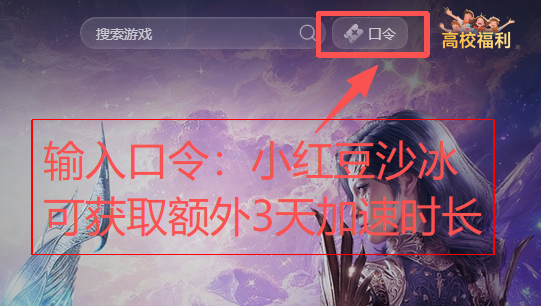 点击右上角【口令兑换】输入口令【小红豆沙冰】免费领取3天加速时长
