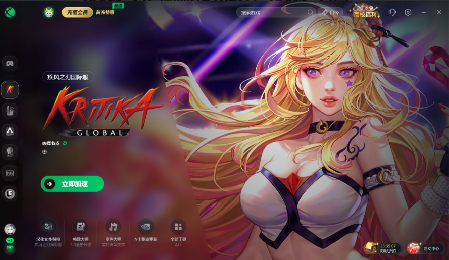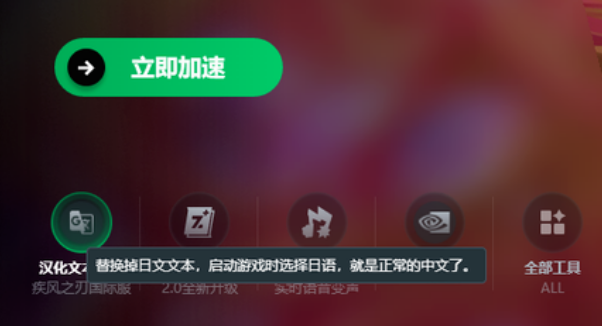进行游戏汉化前,由于国际服距离较远,直连容易出现游戏服务器连接不稳定、游玩卡顿等问题,可以使用迅游加速器,右上方搜《疾风之刃国际服》进入加速界面,即可一键优化游戏网络连接。