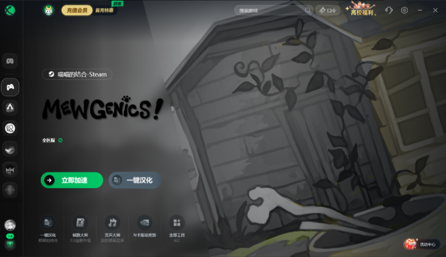 《喵喵的结合》目前不支持简体中文,游戏汉化包下载繁琐,防止安装失败,这里玩家可以直接使用迅游工具栏【一键汉化】工具,下载后启动游戏即可查看中文页面啦~
