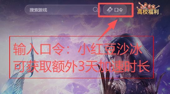 点击右上角【口令兑换】输入口令【小红豆沙冰】免费领取3天加速时长