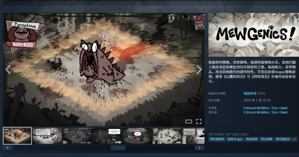 《喵喵的结合》是一款深度十足的策略角色扮演游戏,游戏融合了回合制策略与Roguelike元素,玩家需要培育变异猫咪、组建队伍进行地牢探险。通过遗传特性和道具组合,影响多代角色发展。游戏于2026年2月11日正式解锁,还不知道游戏如何下载和改中文的玩家看这里哦~
