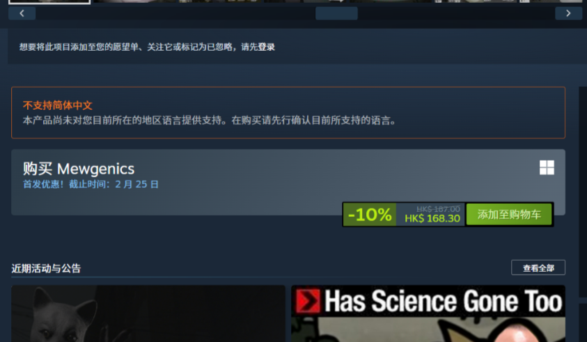 步骤一:打开steam商店搜《喵喵的结合》,进入游戏详情界面。