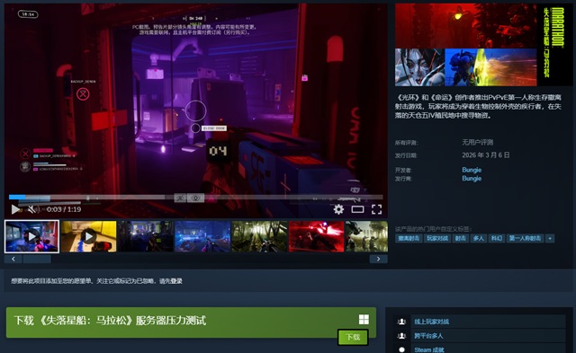 由Bungie操刀、索尼力推的《失落星船:马拉松》,即将于2026年3月6日全平台正式发售,官方宣布于2月27日凌晨2点至3月3日凌晨2点开启全球服务器压力测试。作为备受期待的科幻FPS大作,此次压力测试面向全球玩家免费开放,无需激活码,玩家可提前体验游戏核心玩法,还能解锁正式服专属奖励。但不少国内玩家不清楚具体参与流程,本文就来分享压力测试参与教程。