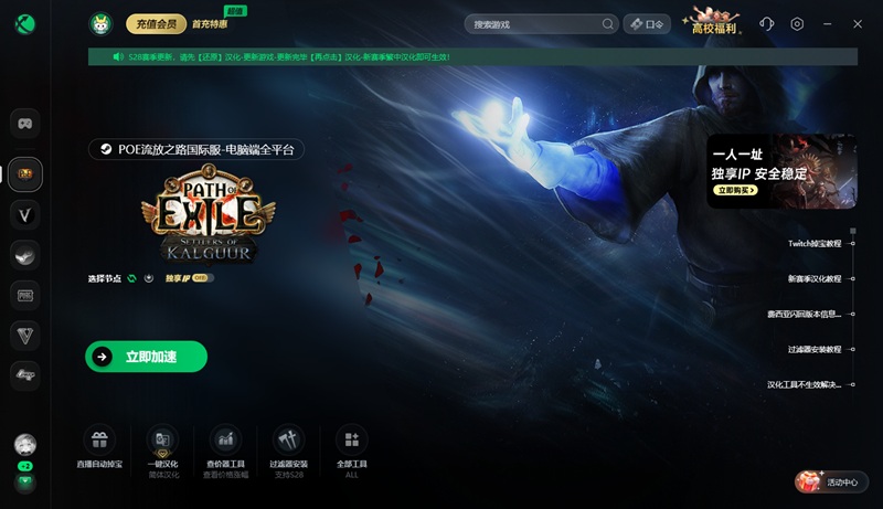 作为暗黑系ARPG的经典大作,《流放之路》国际服凭借更新快、内容全、交易市场活跃的优势,成为众多硬核玩家的首选。不少玩家在游玩《流放之路》国际服时,遇到卡顿、掉线、延迟飙升等问题,严重影响游戏体验。针对这里问题,下面带来解决方法,帮助大家流畅征战瓦尔克拉斯大陆。