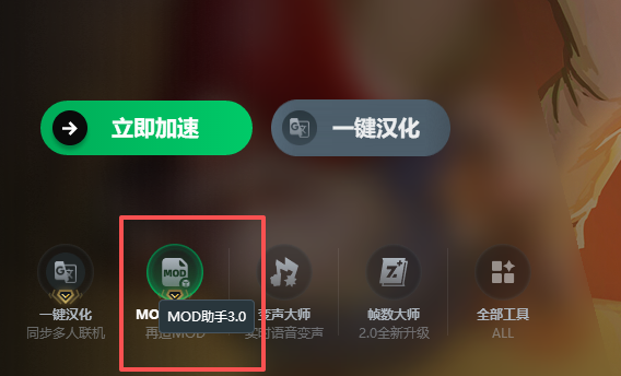 加速完成后,在游戏加速界面找到【MOD助手】入口,点击进入【MOD助手】专区;