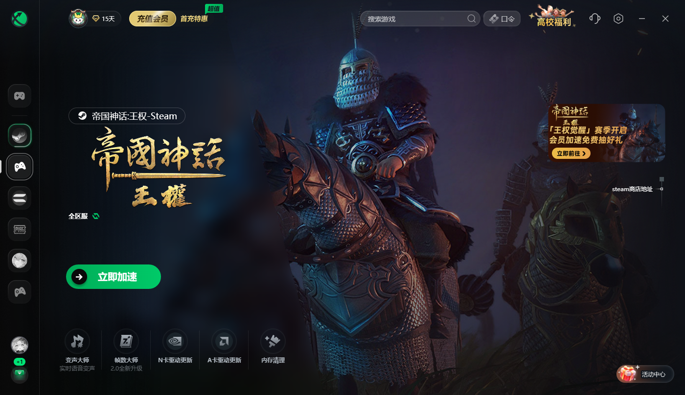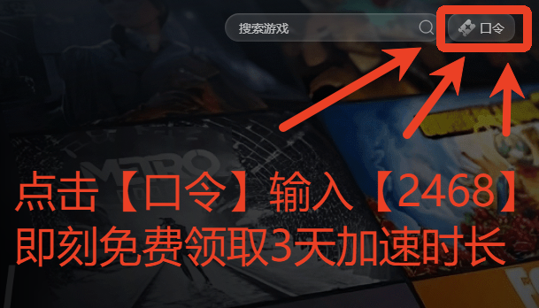 点击右上角【口令】输入口令【2468】免费领取3天加速时长