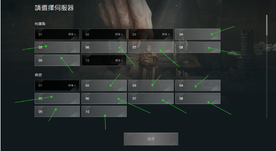 然后就是选择服务器了,黑色的无法选择就是已经满了,白色是可选服务器