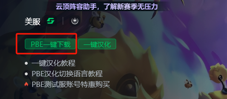 想要下载PBE很简单,我们只需要点击迅游页面的PBE一键下载