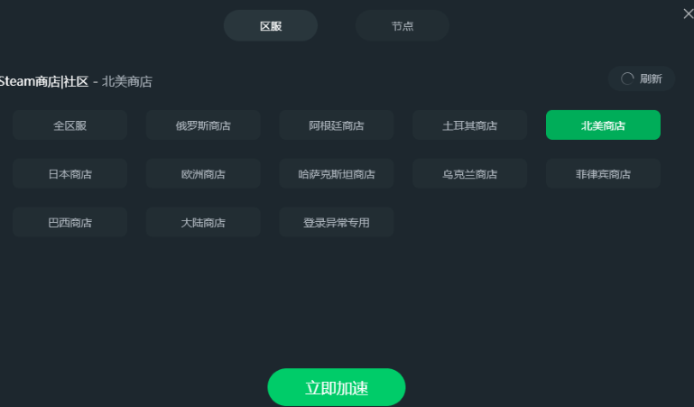 同时我们还需要在加速界面找到加速节点选项,将加速节点更改为与电脑所在地同样的地区即可。