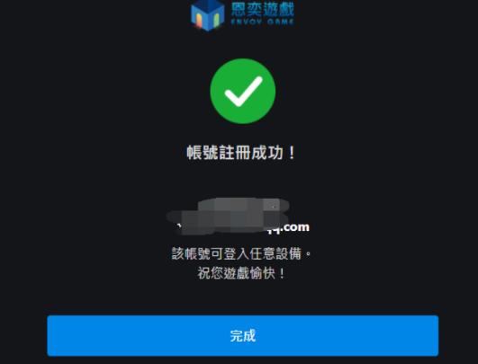 之后完成之后,即可成功注册游戏账户。