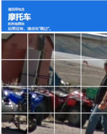 人机验证就会以这种图片的形式进行,让我们在图片中找到指定的物品。这个时候就要注意一些细节,比如说图片中要求点击摩托车,而最右下角的图片中虽然大部分是一个人的腿,但是还是出现了一点摩托车的轮胎,所以这个也要选上。
