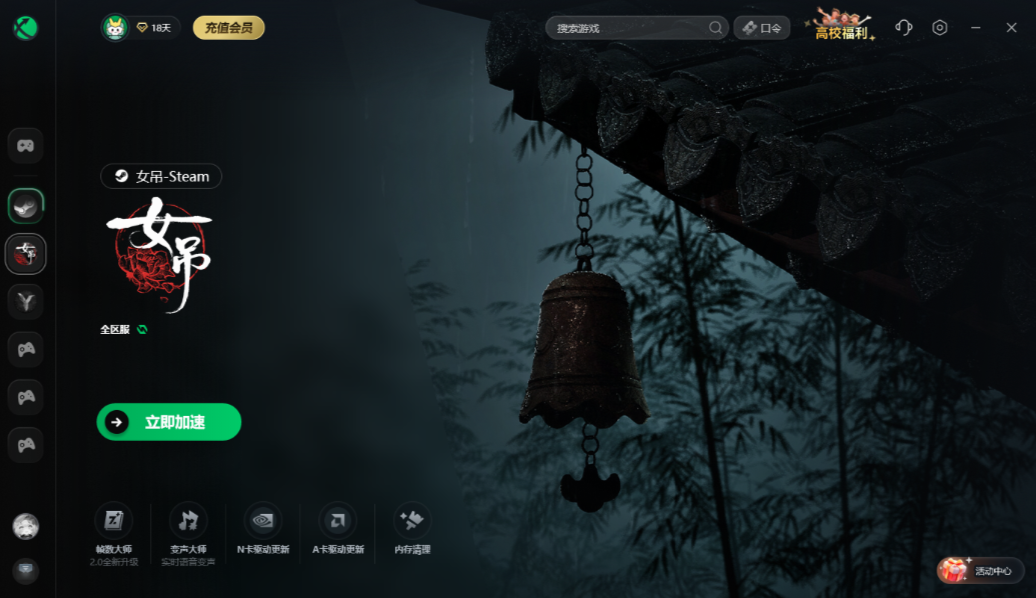 由于游戏服务器可能位于海外,直接连接容易因网络不稳定导致高延迟、掉线,甚至无法进入游戏。我们启动迅游加速器,选择《女吊》及对应的区服进行加速,能通过专属线路智能优化网络路径,有效降低延迟与丢包率。迅游采用动态路由调整、全运营商节点部署和7x24小时全网动态监控技术,自动切换最优线路。