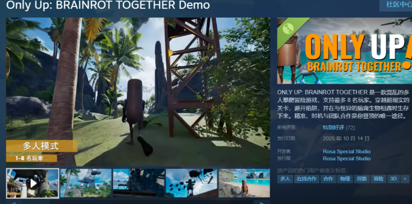 打开steam后搜索《Only Up: BRAINROT TOGETHER Demo》