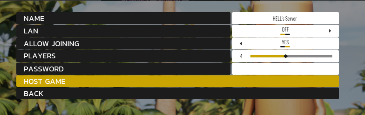 在创建房间界面选择【host game】即可,这里可以调整玩家数量和更改房间名称。