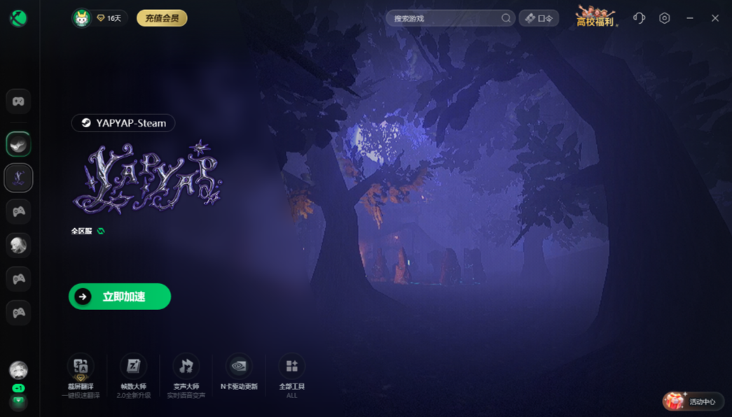由于目前游戏暂时还没有出汉化包,我们可以借助迅游加速器。打开迅游搜索《YAPYAP》加速。