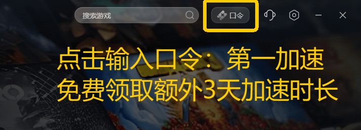 点击右上角【口令兑换】输入口令【第一加速】免费领取3天加速时长