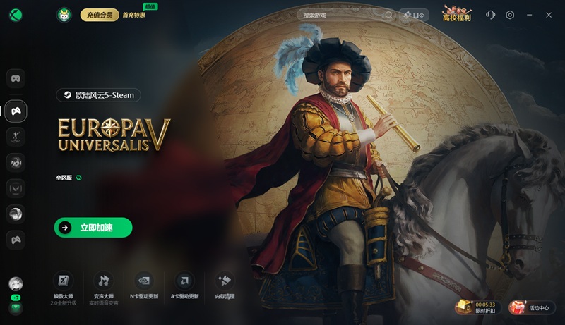 迅游加速器是一款专业的游戏加速器,支持《欧陆风云5》全区服加速,加速稳定又流畅,一键解决网游下载慢、延迟过高、游戏卡顿、容易掉线、联机困难等问题,助力流畅联机。