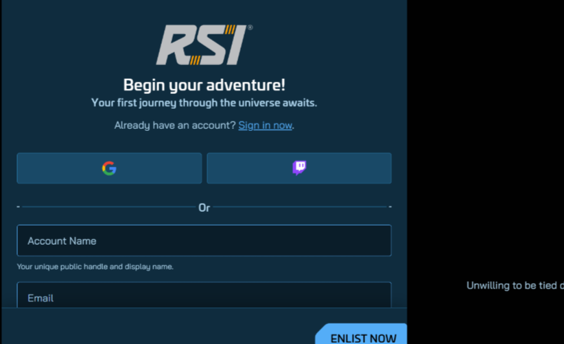 按顺序填写:账户名(游戏ID)、邮箱、密码、生日,并勾选同意。点击"ENLIST NOW"提交。前往邮箱查收完成验证即可。
