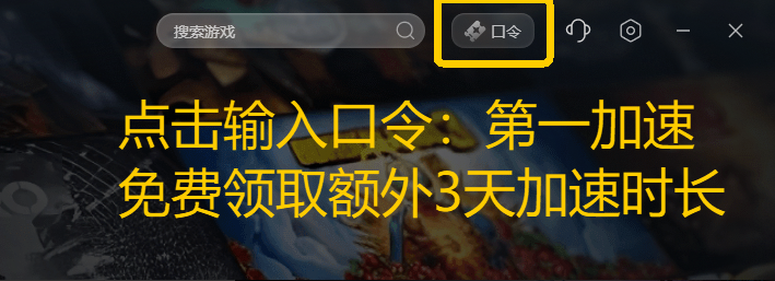 点击右上角【口令兑换】输入口令【第一加速】免费领取3天加速时长