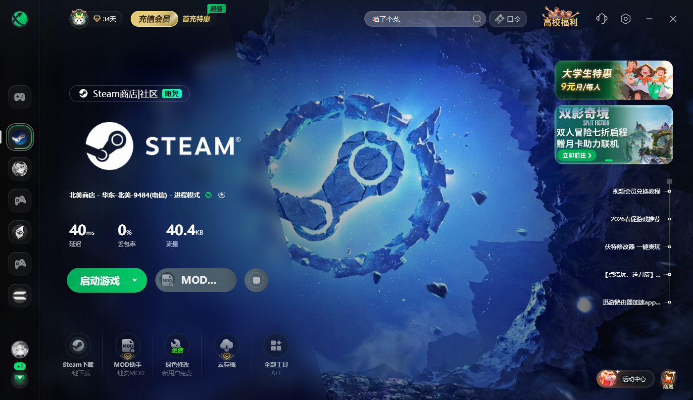 网络不稳定、延迟过高会导致Steam打开、安装及游戏运行时出现网络类报错,迅游加速器可优化跨境网络,降低延迟与丢包率。启动迅游加速器后,搜索“Steam”并一键加速,加速成功后再启动Steam、安装游戏或运行游戏,可有效避免因网络波动引发的各类报错。