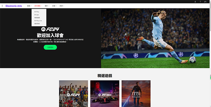 在迅游加速界面攻略处点击“EA官网”,访问EA平台官网。在官网点击“更多体验” - “EA App” ,进入后找到并点击对应系统的 “下载”按钮,即可开始下载安装包。