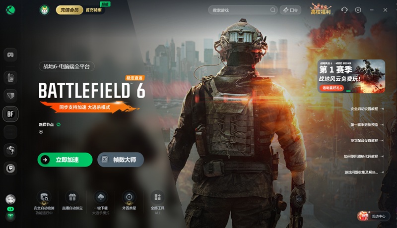 迅游加速器是一款专业的网络加速器,支持《战地6》全区服加速,加速稳定又流畅,一键解决网游下载慢、延迟过高、游戏卡顿、容易掉线、联机困难等问题,助力流畅联机。