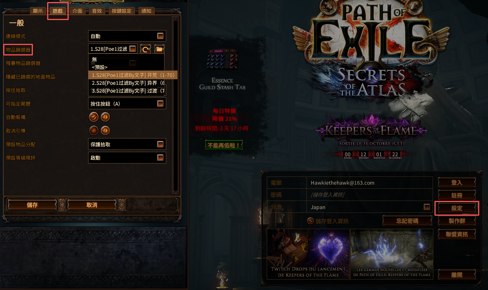 3.打开游戏即,在设置-游戏-物品筛选中选取,即可使用